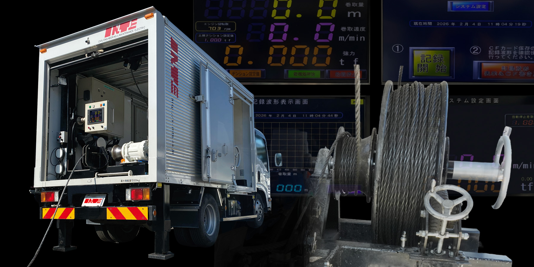 本製品はケーブル延線作業に使用されるもので、ウインチ装置(油圧・電動を選択可)、操作用モニター(タッチパネル式)、計測システム(張力、条長の監視及び記録)からなり、機動性・安全性の高い延線が行える構造になっています。